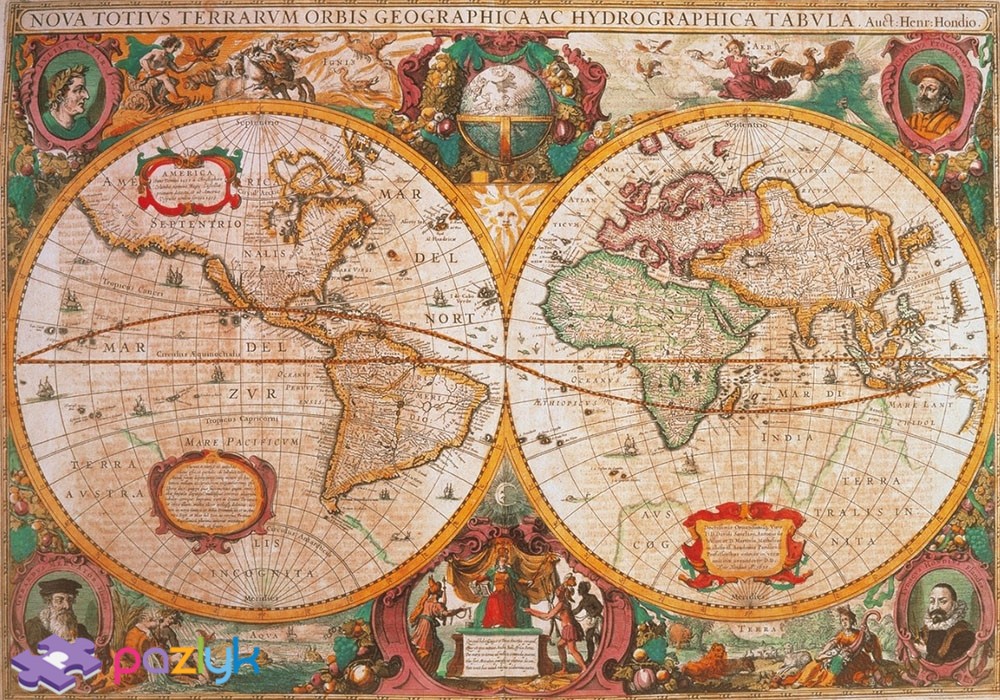 Пазли на 1000 елементів із серії High Quality Collection з зображенням старовинної карти світу, намальованої у 1630 році відомим нідерландським картографом та видавцем Генріхом Гондіусом.