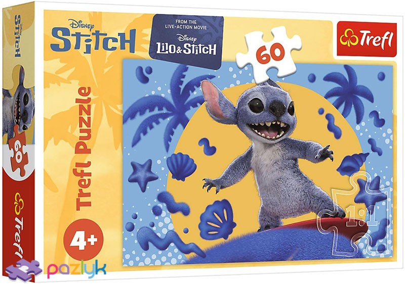 Пазли на 60 елементів із зображенням вигаданого персонажа Стіча - одного з двох головних персонажів нового американського науково-фантастичного фільму "Ліло і Стіч".