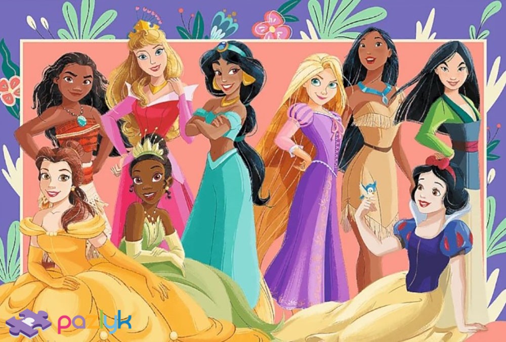 Пазлы на 160 элементов с изображением Белоснежки, Золушки, Белль, Ариэль, Ваяны и других очаровательных Принцесс из популярных анимационных фильмов студии Уолта Диснея.